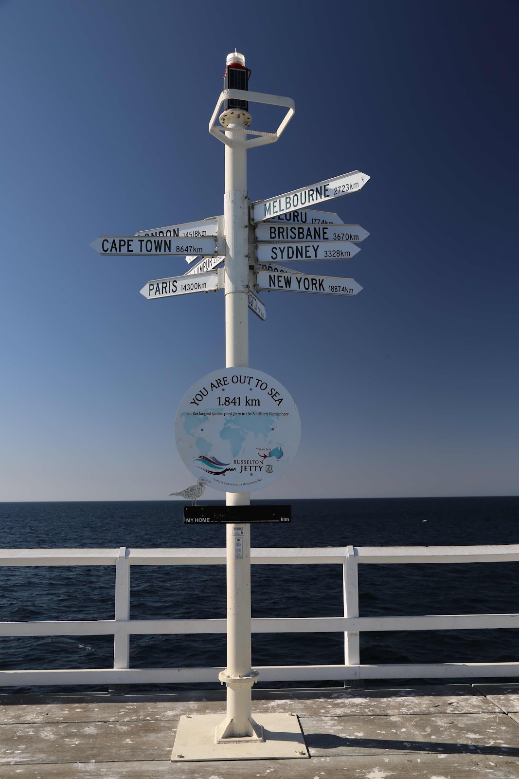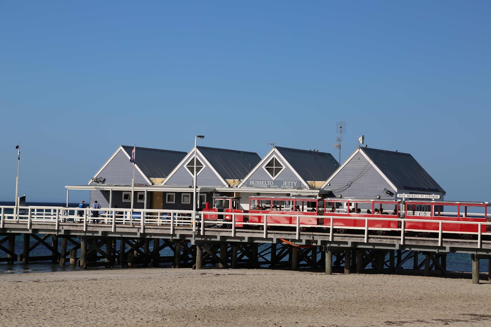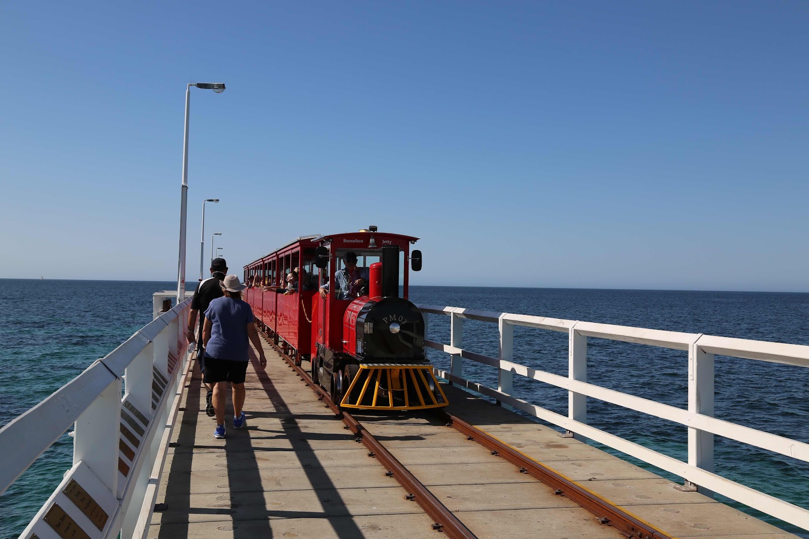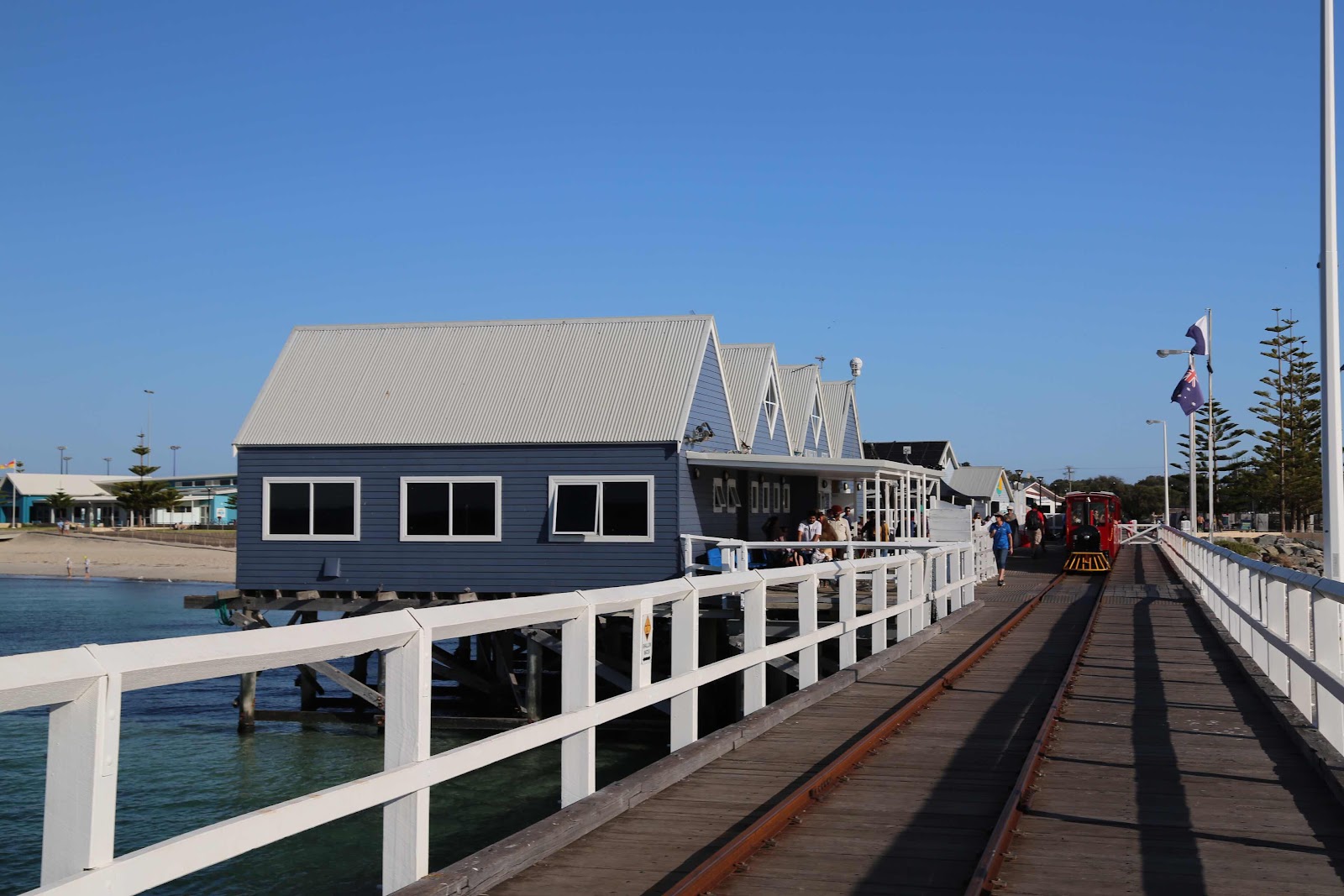 Weiter sind wir nach Busselton gefahren und haben unser Gepäck abgeladen, bevor wir dann zum Busselton Jetty sind. Ab 1850 begannen die Arbeiten für den hölzernen Landungssteg Busselton Jetty. Dieser Holzsteg ist der längste seiner Art auf der Südhalbkugel und ist 1.841km lang.