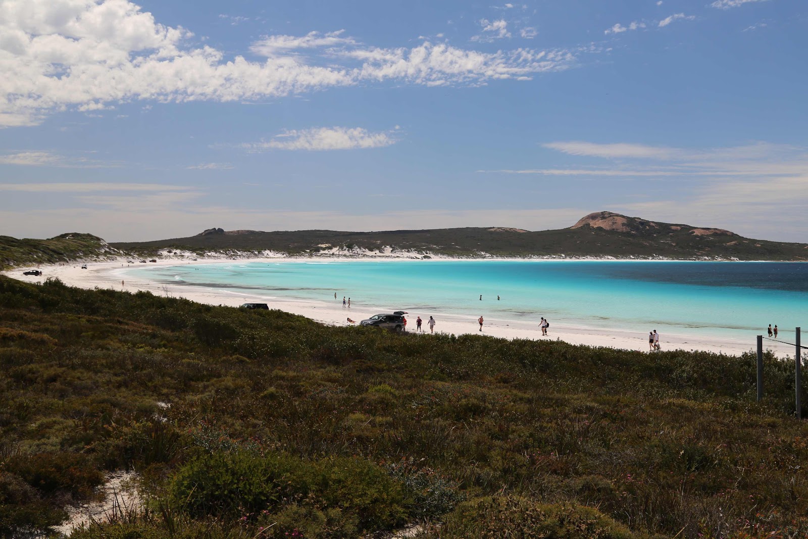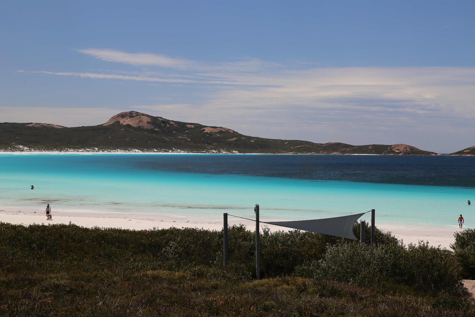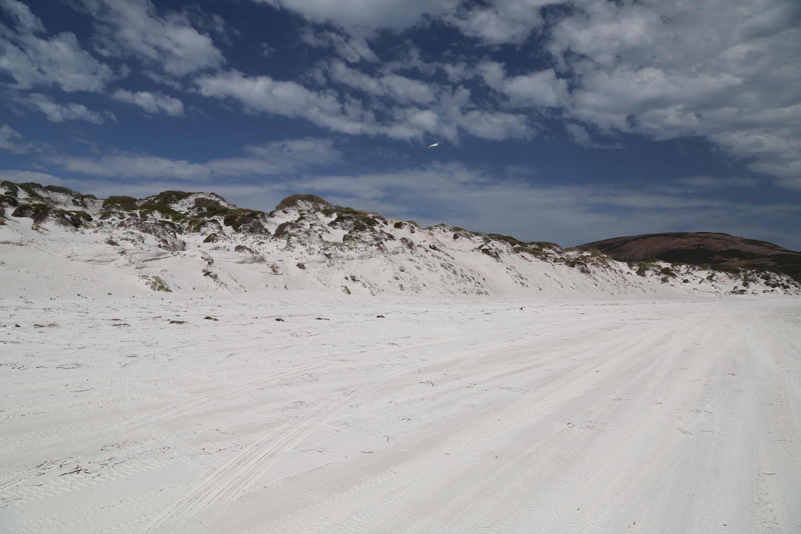 Das Wetter hat leider mit der Zeit etwas umgeschlagen, der Wind zugenommen, so dass die Temperaturanzeige dann auch einmal bei 22 Grad war. In jedem Fall war es hier zu windig, um zu picknicken, weshalb wir dann wieder zur Lucky Bay fuhren.