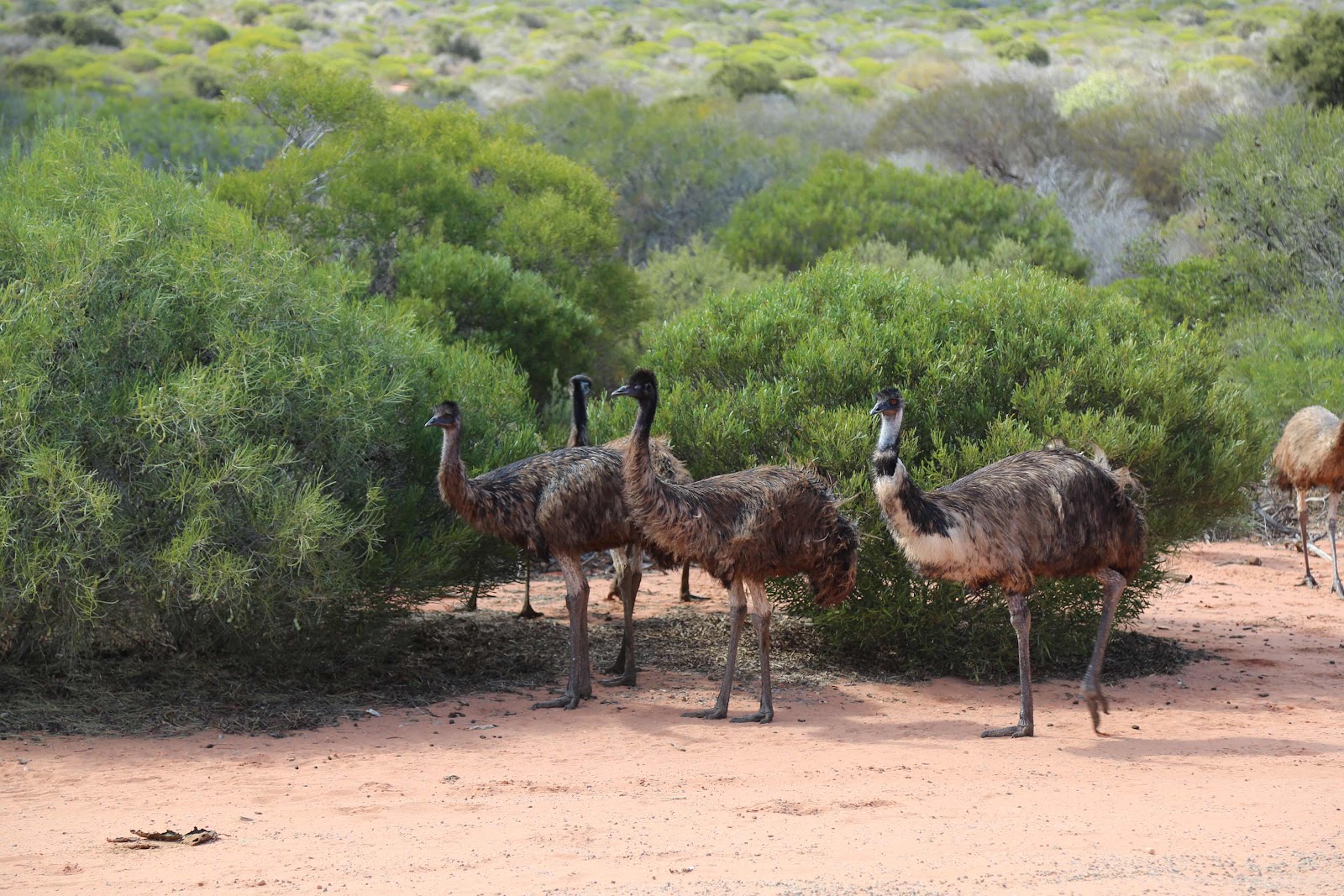 Gleich zu Beginn der Einfahrt in den Park haben wir eine Emu-Familie gesehen. D.h. es waren Teenage-Emus mit Papa-Emu, da die Muttertiere offenbar die Verantwortung für die Aufzucht der Jungen den Vätern überlassen.