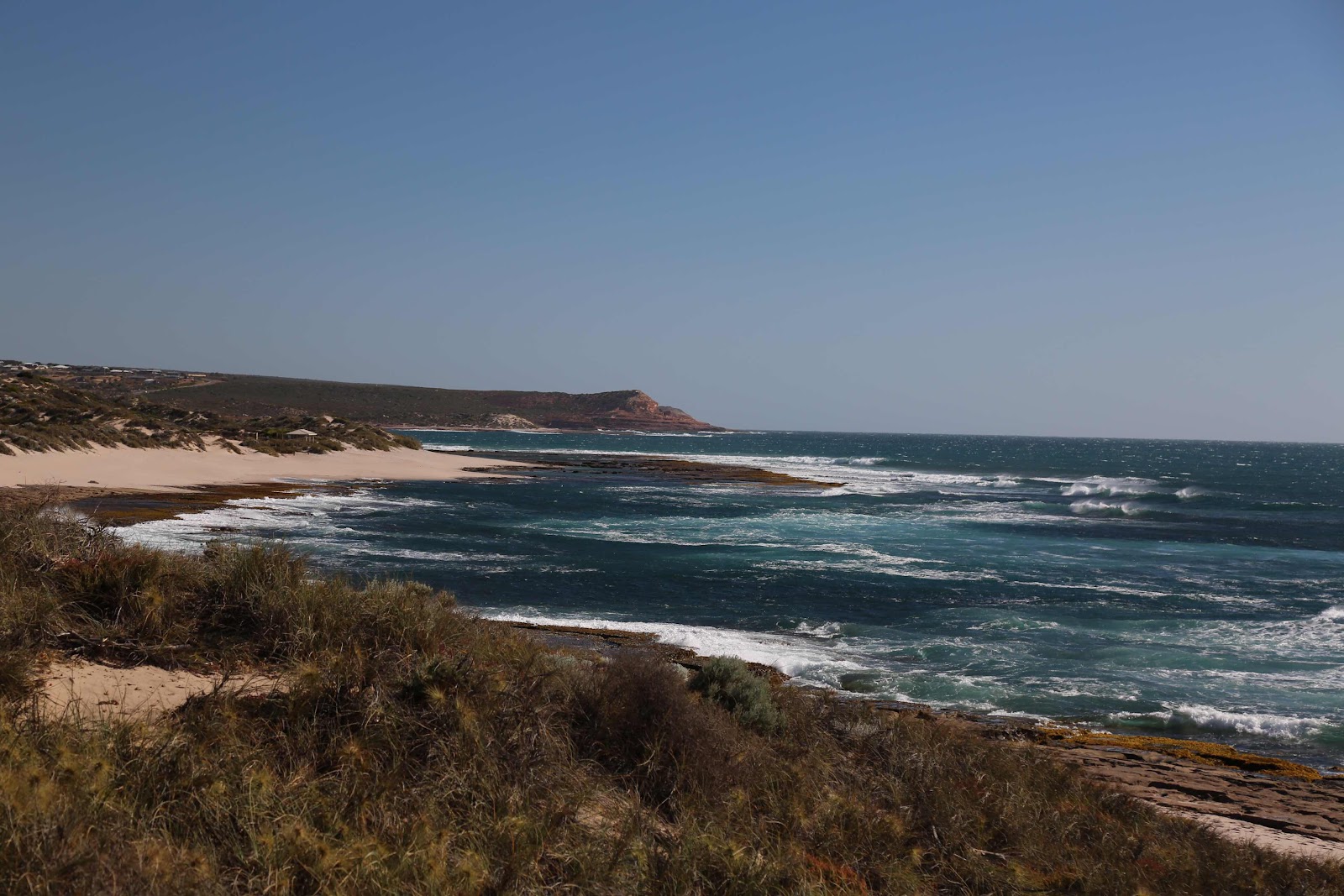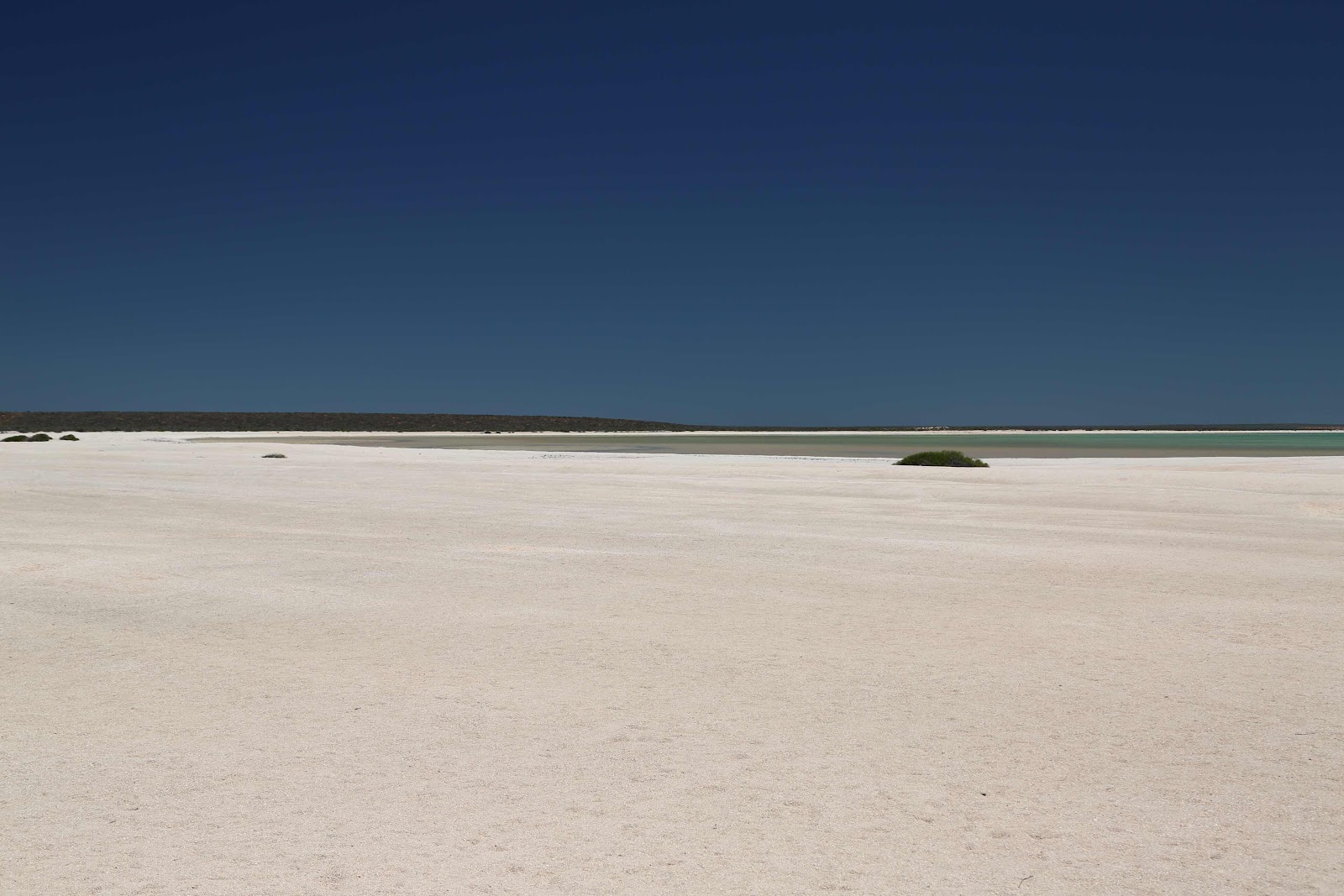 Entlang der Streck um die Shark Bay besuchten wir noch den Shell Beach. Hierbei handelt es sich um einen 120km langen schneeweissen und nur aus Kalkschalen bestehenden Strand. Die winzigen Muscheln sind teilweise bis zu vier Meter tief aufgeschichtet.