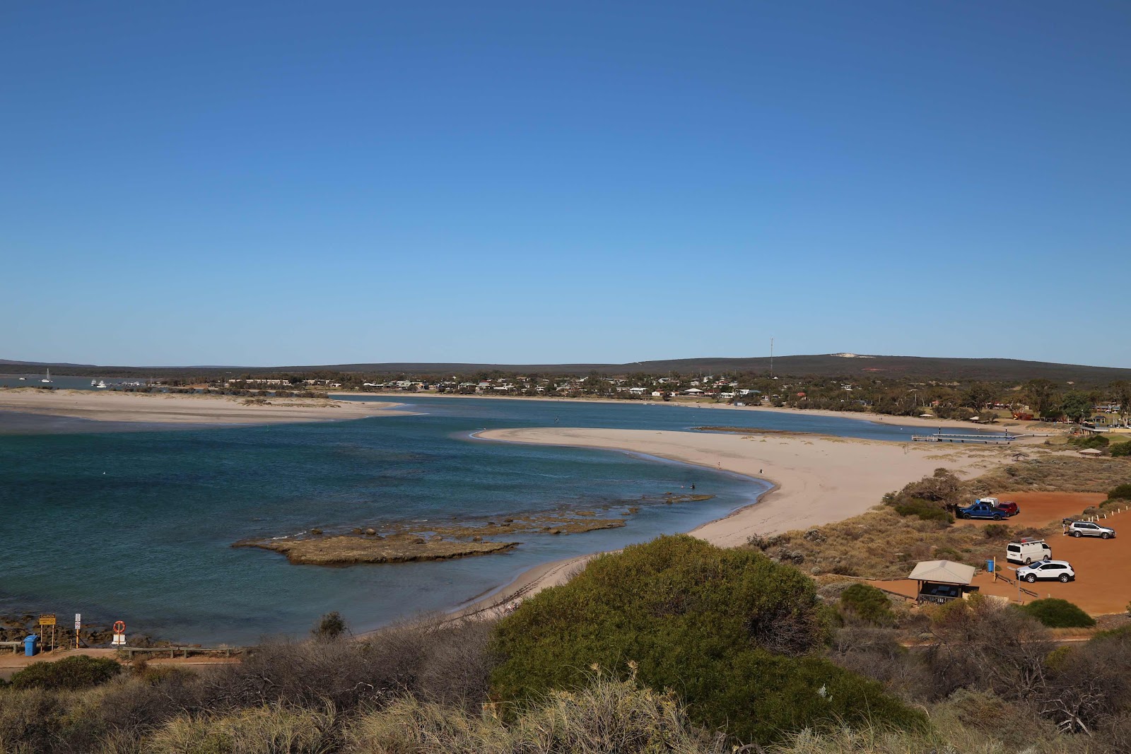 Hier unten in der Mitte ist die Ortschaft Kalbarri sichtbar.